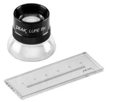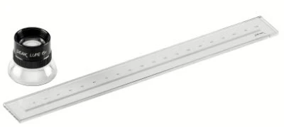 The five lengths of 50 mm, 100 mm, 200 mm, 300 mm and 400 mm are supplied with a 15x reading magnifier (standard 1962 magnifier) in a transport box.