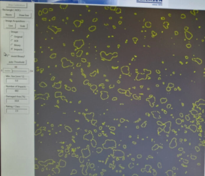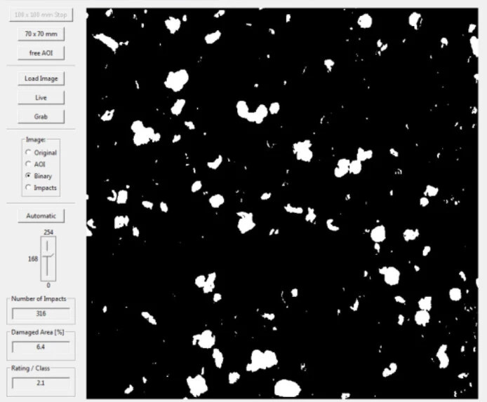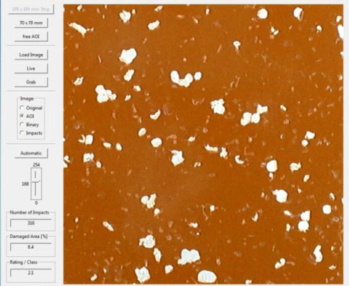 – Area of Interest (AOI): 70 mm x 70 mm (recommended)– Threshold setting: by means of reference samples according ISO 20567-1