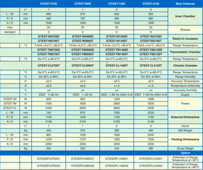 models offer different solutions for your testing requirements working with control of temperature and relative humidity. Galli offers GTEST model in 3 versions: