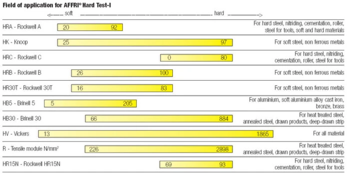 Reading scales : HRA HK HRC HRB HB30T HB5 HB30 HV R HR15N