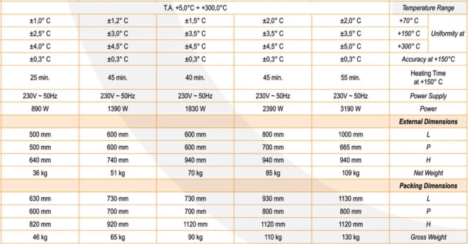 Temperature Range T.A. +5,0°C ÷ + 300,0°C