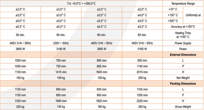 Temperature Range T.A. +5,0°C ÷ + 350,0°C