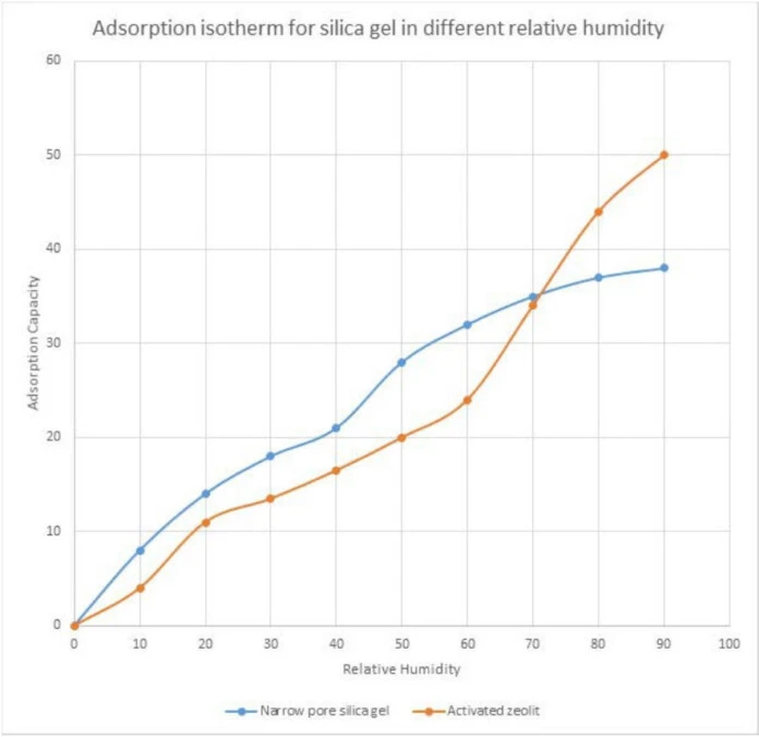 However, activated zeolite absorbs moisture better than silica gel at high relative humidity, while silica gel shows best results at low humidity levels.
