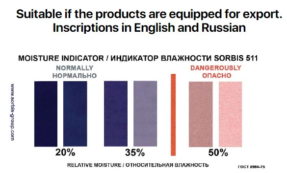 SORBIS 511 humidity indicators are used in all industries where humidity control inside the packaging or premises is required.