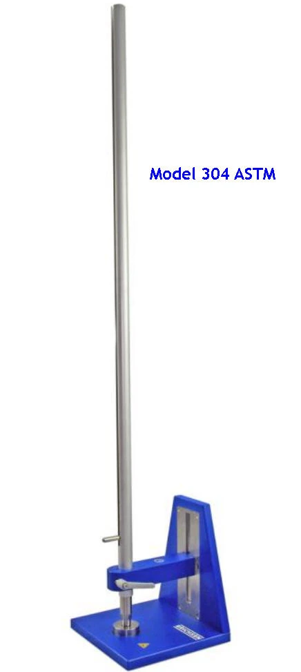 The Impact Tester, Model 304, in all its variations, consists of a sturdy base plate with attached holding arm into which the slotted fall tube is clamped (transverse thread screw).