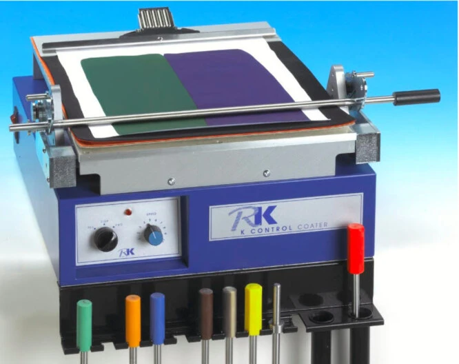The K Control Coater is widely used for the application of paints, varnishes, adhesives, liquid printing inks and many other surface coatings to produce quick, accurate and repeatable samples. These may then be used for quality control and presentation purposes, R&D, computer colour matching data etc.