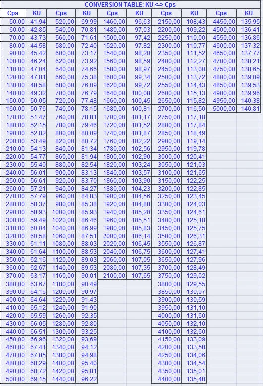 Display : Krebs Unit (KU), grams and mPa.s (cP)