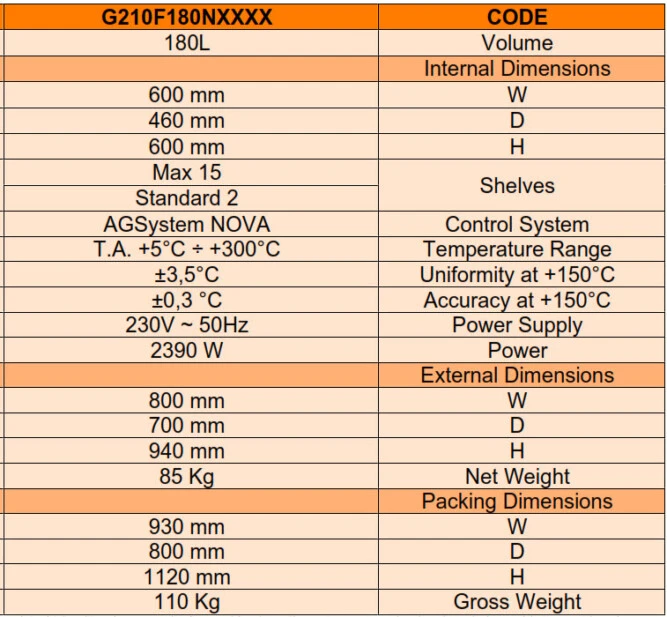 • AG-System Control: PID Digital Microprocessor, careful and sensitive. Version: DAILY, PRO, TALENT• Range Temperature: from +10,0°C above ambient up to+250°C• Safety Device, Class 3.1• Suitable for dry samples containing solvents• According to EN 1539• Reproducibility of the tests: in applications where avoiding the formation of explosive mixture inside the chamber, for example in the use of paints, varnishes, adhesives, binders, coils impregnated• Dynamic and homogeneous Forced Air Circulation System