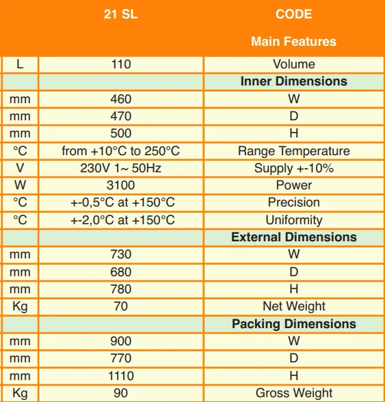 21SL Safety Drying Ovens Galli’s Original Equipments