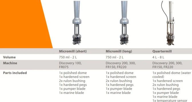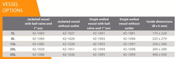 Volume range : Dispermill vessels from 100 ml. up to 10 liter