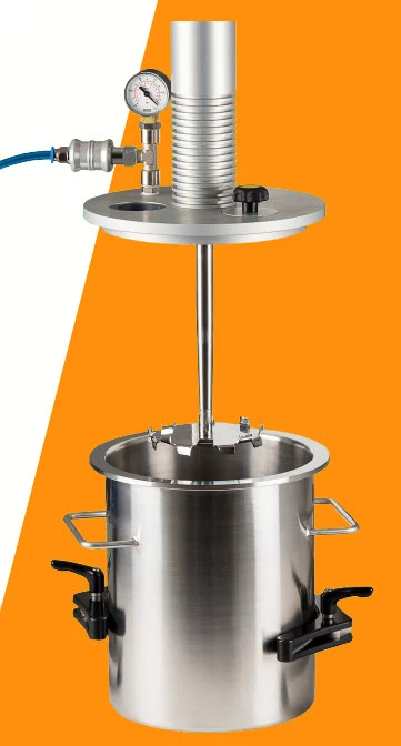 The vacuum dissolver includes a lid that is made of high-quality aluminium, a vacuum gauge and vacuum valve.