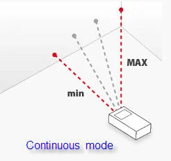 7. Countdown measure (When you measuring at narrow or hard reach places, you can use build-in timer to delay your measurement time to setup the laser distance meter. Click on the timer button and set the timer from 3~15 seconds.)