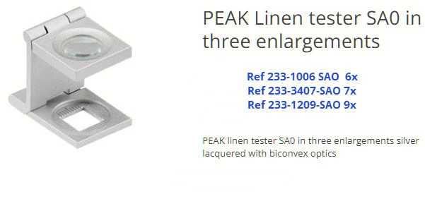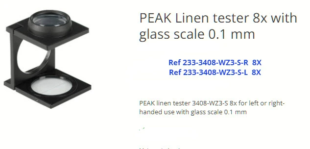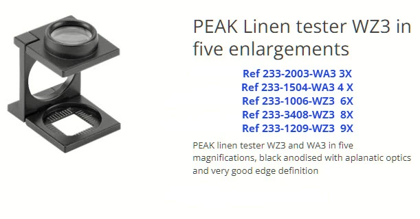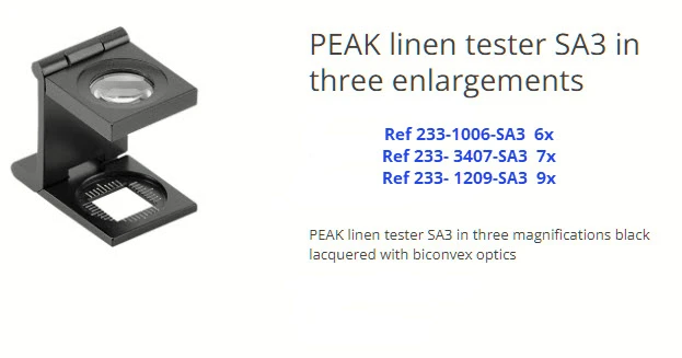 High-quality linen tester from PEAK in magnifications from 3x to 9x.