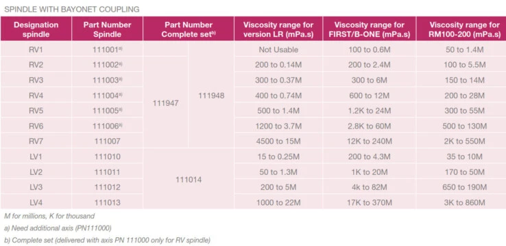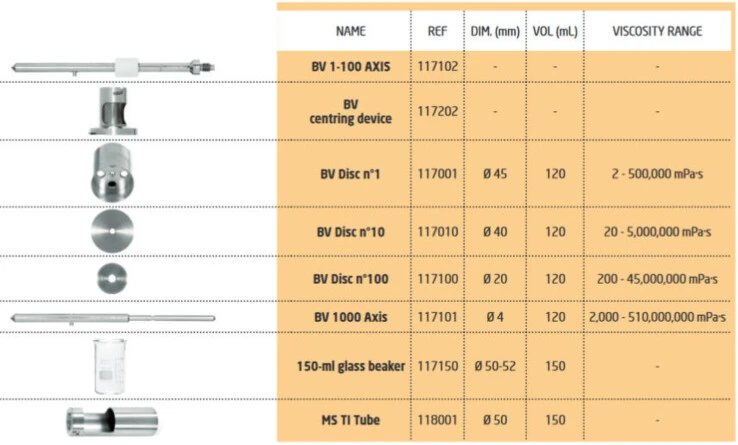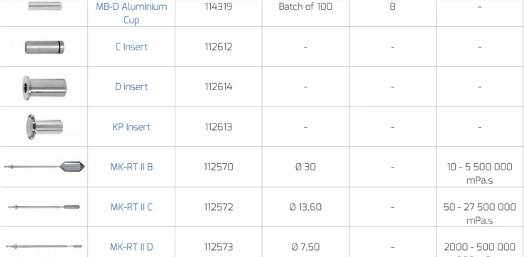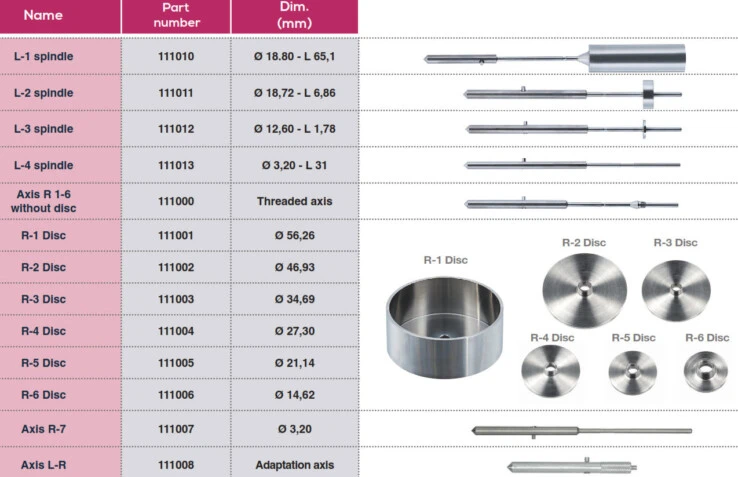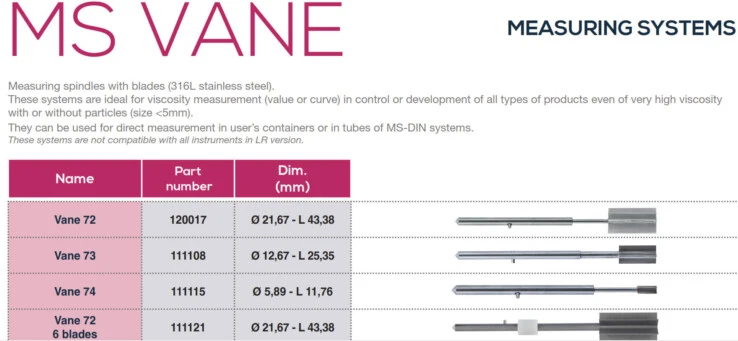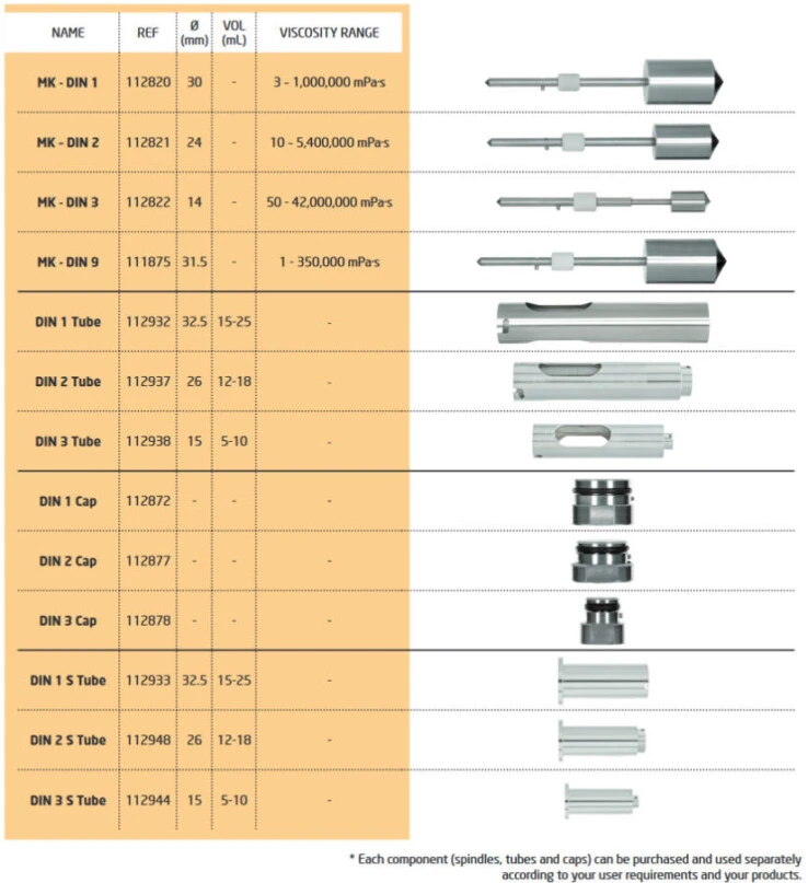 These measuring spindles are intended for measuring viscosity in a 600 mL beaker.