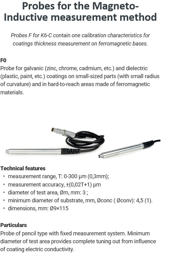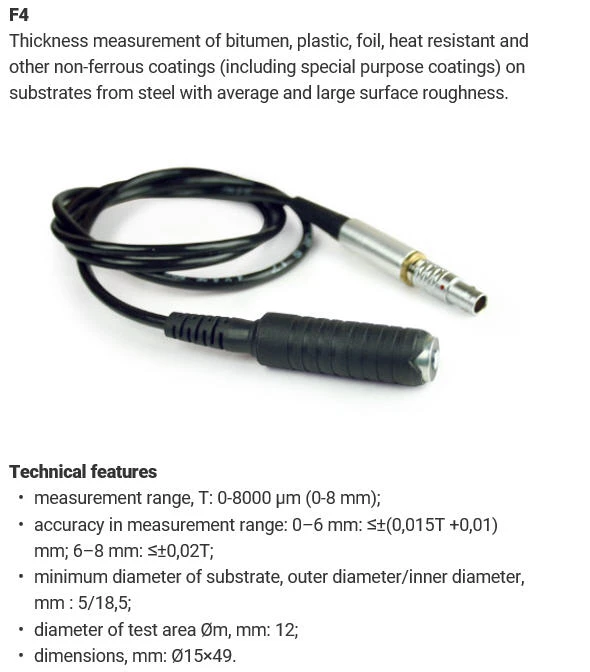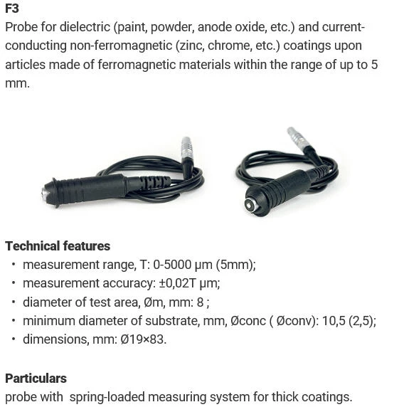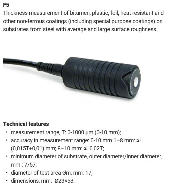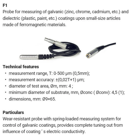 F1Ni — Thickness measurement of galvanic coatings (with the exception of nickel electrolytic), paint-and-lacquer and other non-ferromagnetic coatings on small-sized components made of ferromagnetic materials.
