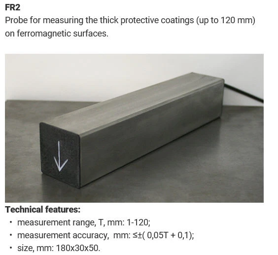 — dielectric (paint, lacquer, enamel, plastic, teflon, anodic oxide, mastic and other) coatings on products from ferrous and non-ferrous metals;— galvanic (nickel, zinc, chrome, cadmium, tin, silver, copper and other) coatings on products from ferrous and non-ferrous metals;— multilayer coatings (layer by layer);— plated coatings;— special conductive coatings on products from metals and plastics;— lacquer, paint and galvanic coatings on inner surfaces of pipes and cylindrical products;— protective layer of concrete and determination of steel reinforcement position in concrete;— wall thickness of large products from fiberglass and carbon fiber reinforced plastics during manufacture and delivery with one side and two sides access;