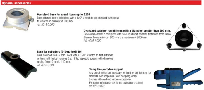 A variety of accessories to facilitate testing on small or oddly shaped items is available upon request.