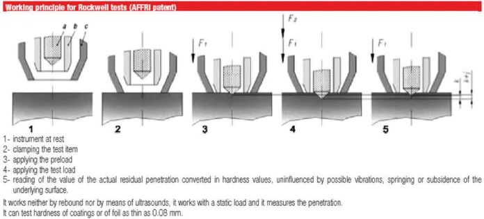 Rockwell HRA (20...92); HRB (26...100); HRC (0...80); HR15N (69...93); HR30T (16...83)