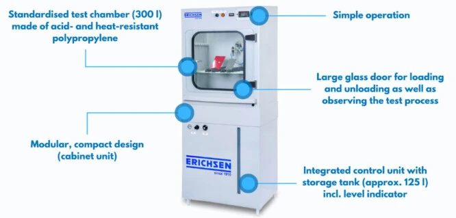 The ERICHSEN Corrosion Testing Instrument, Model 606, take full advantage of our wide experience in the construction of all kinds of testing equipment as well as of the information and worldwide feedback received from users. Made of impact resistant, eco-friendly polypropylene material each instrument forms a closed unit.