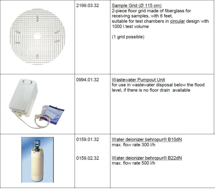 The scope of supply includes an equipment for tests in heat damp atmospheres according to DIN EN ISO 6270-2 (CH) as well as two condensate receptacles.