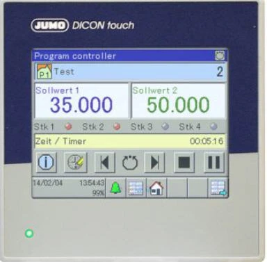 The control cabinet is equipped with JUMO DICON touch for easy operation and monitoring of the test equipment as well as the necessary regulating and control instruments for monitoring: