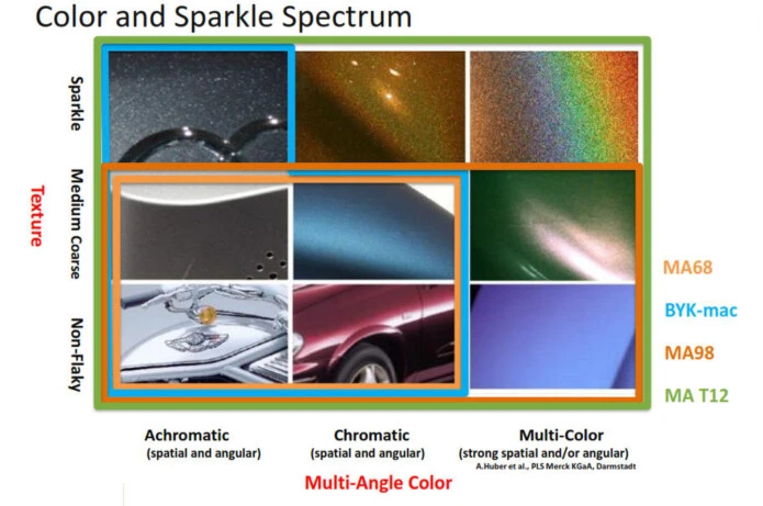 - Measure effect finishes across a variety of applications, from automotive paint to plastics and metals, with 12 angles of measurement to increase speed-to-market