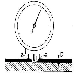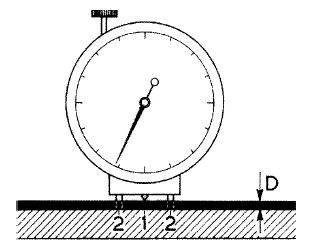 The difference in level between substrate and film surface is gauged by the contact point of the dial indicator.