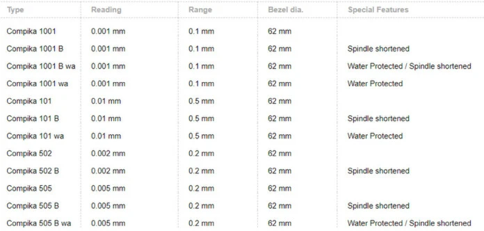 Measuring range:1000 µm over 5 pointer revolutions
