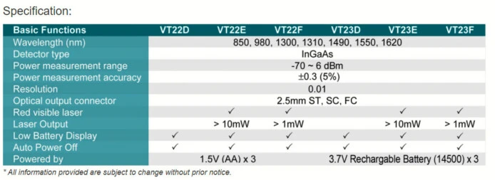- With Visible Laser Beam, to have visual fault checking of optical fibre (Some Models)