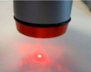 The sensor made of extruded high-strength plastic is designed for manual handling and contains, in addition to eye-safe positioning LEDs (UV light), the measurement data recording.