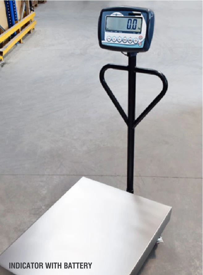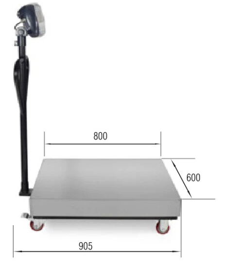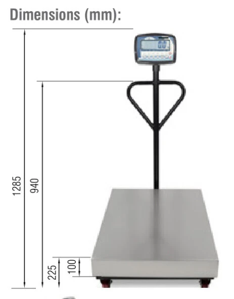 Bench scale with wheels and handles to facilitate mobility.