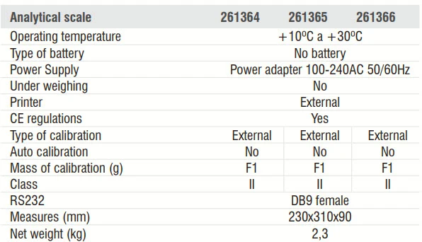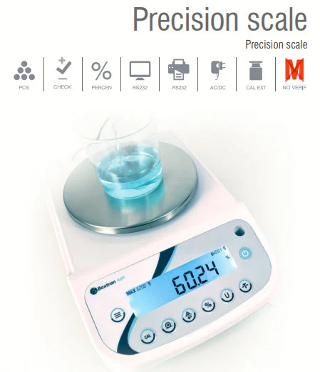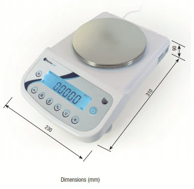 • LCD backlight display, digits of 15 mm.• External calibration.• Stainless steel pan.• Weighing pan dimensions: Ø160 mm• Scale with acoustic notification (buzzer).• Operating temperature: +10ºC +30ºC.• Power supply: AC/DC 100-240VAC 50/60Hz.• Multiple units of measure: gram, ounce, carat, pennyweight.• RS232 output.• Weighing system with load cell.