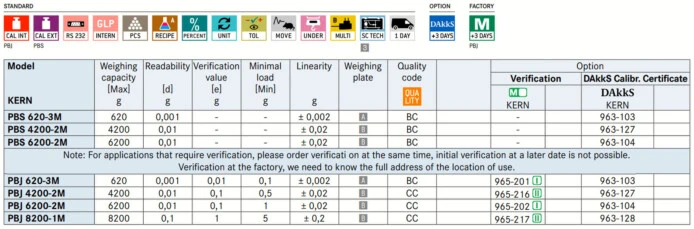 · KERN PBJ: Internal adjustment in the case of a change in temperature and time-controlled at defined intervals, guarantees high degree of accuracy and makes the balance independent of its location of use