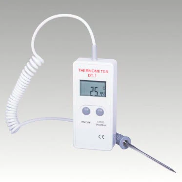 High accuracy food laboratory digital thermometer DT-1 can be used in food industry, research institutions and laboratories to control and measure temperature over the range of -100°C to 270°C with 0.07 °C accuracy.