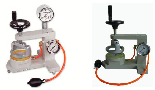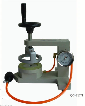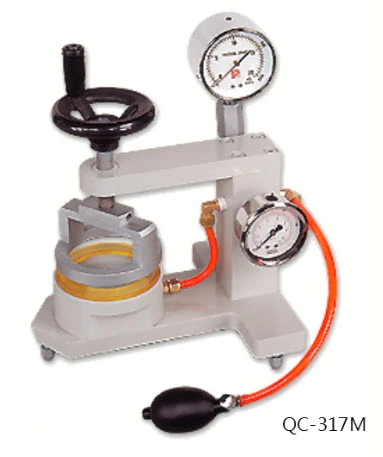 1. Pressurized ball by hand, to do the pressure → release → pressure → release, the continuous action to gradually increase the pressure within the pressurized base, and please keep pressurizing in the speed of about 1. kg / cm ²/min, please immediately stop pressurize, as specimens have three spots leaking. Record the readings on the pressure gauge, the readings are water-resistance value of this specimen.