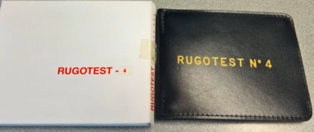 Electroformed pure nickel plate, representing 4 degrees of shotblasting according to ISO 8503, allowing the condition of many steel surfaces to be characterised visually and by touch. 2 models: