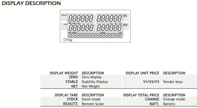 - Optional RS232/Bluetooth connection to connect PC. > 28 Sets direct PLU and 99 indirect PLU.