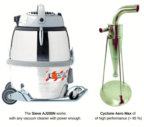 with Ø 60, 75, 100, 150, 200 and 203 mm sieves.