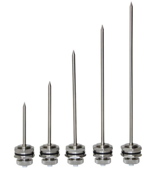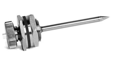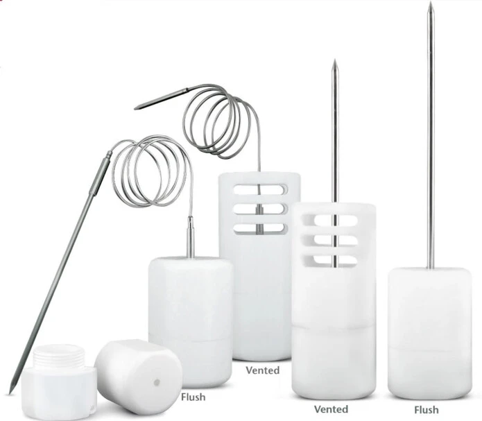 The ThermaLock Pro Canning Fitting is comprised of Silicone, PTFE, and food grade stainless steel. Various sheath lengths are available as part of this series to accommodate different size containers. 9/16 hole punch is required for use.