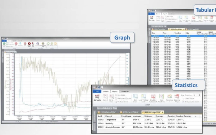 Compatible with the latest MadgeTech Data Logger Software, starting, stopping, and downloading data is simple and reporting capabilities are abundant. The device connects to a PC with the IFC400 interface or the IFC406 docking station (sold separately). Downloaded data can be viewed in graphical, tabular, and summary data form in the MadgeTech software, and all data can be exported to Excel® for further analysis and calculations.