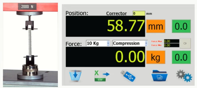 Spring Tester 2C is a new generation of manual instrument for testing springs at medium load with double recirculating ball guides and sliding without friction and play with very high sensitivity and precision; with bidirectional load cells.