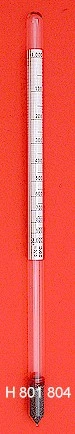Density hydrometers, with thermometer, measuring span 0,200g/cm³, scale graduation 0,002g/cm³, measuring range 0,800 upto 2,000g/cm³, 350mm long.