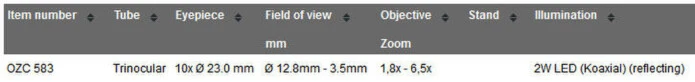 - The range of optional conversion lenses, eyepieces and further accessories mean that it can be used in all common applications in stereomicroscopy