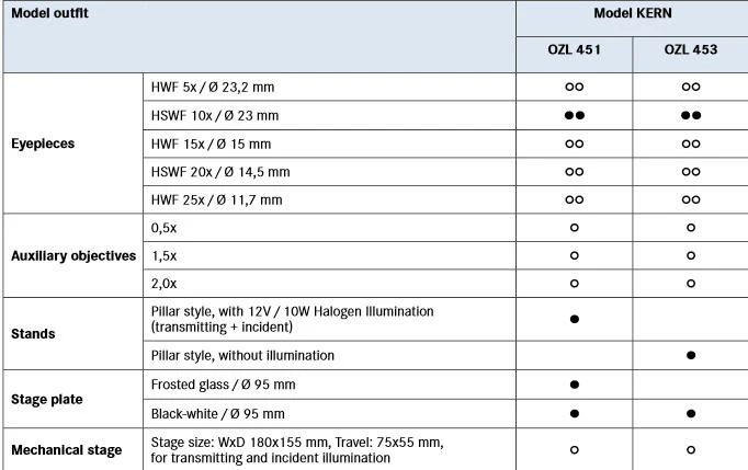 - The KERN OZL-451 and OZL-453 models are extremely robust stereo microscopes which have a large zoom range and are easy to use