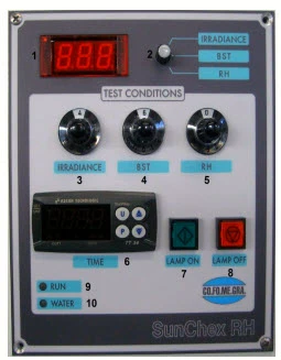 By means of a 1500 W xenon lamp and humidity conditions controlled by an ultrasonic device this instrument simulates all the test conditions prescribed for the evaluation of the color fastness of the most varied products.