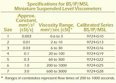 BS/IP/MSL MINIATURE SUSPENDED LEVEL VISCOMETERS