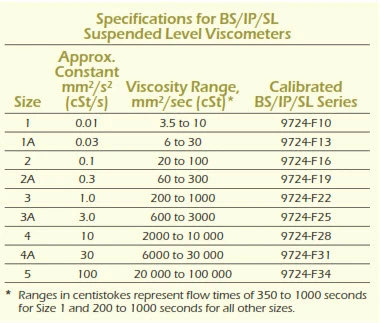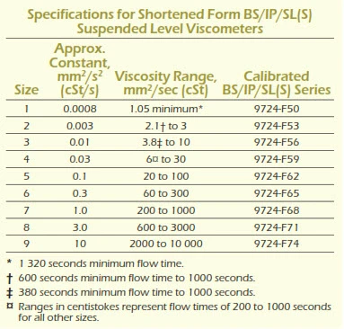 Specifications conform to ASTM D 446 and ISO 3105.