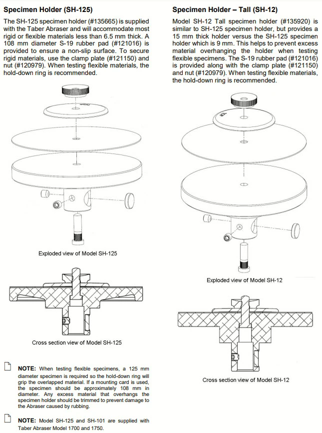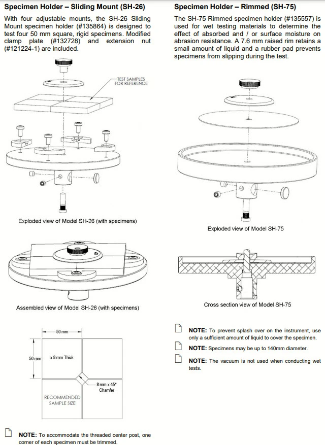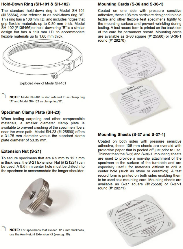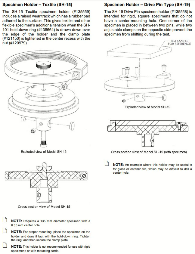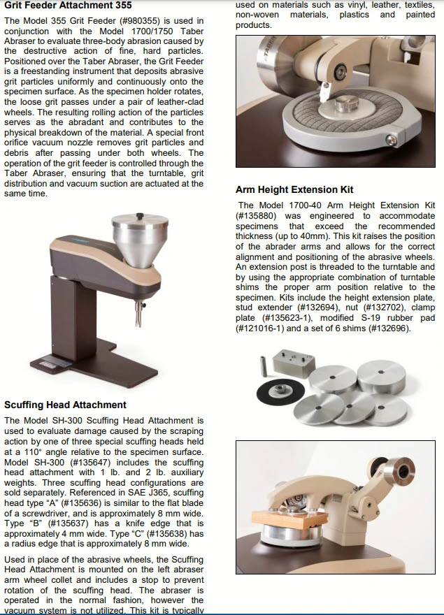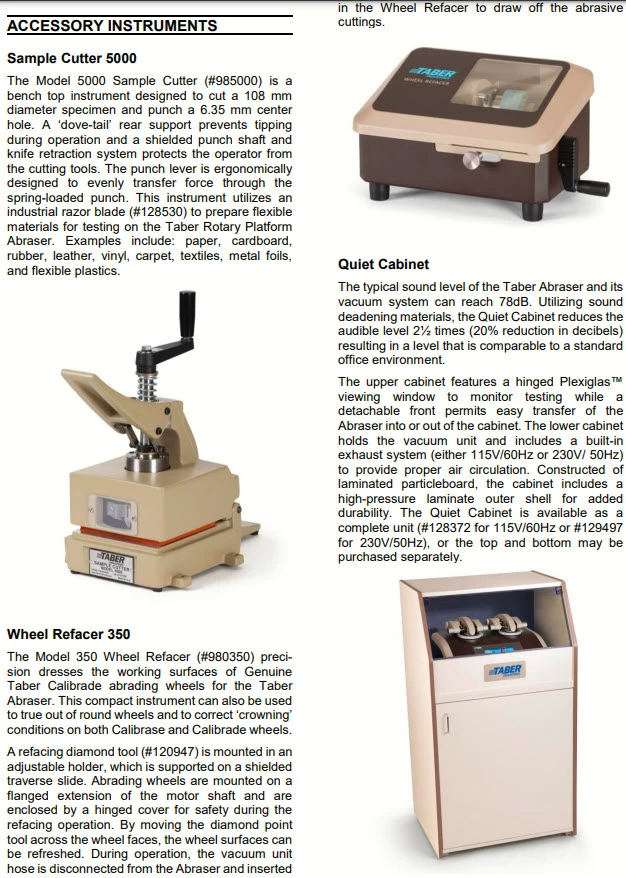 The TABER® ABRASER Model 352 D (Type 1750) has two specimen holders for performing abrasion tests.