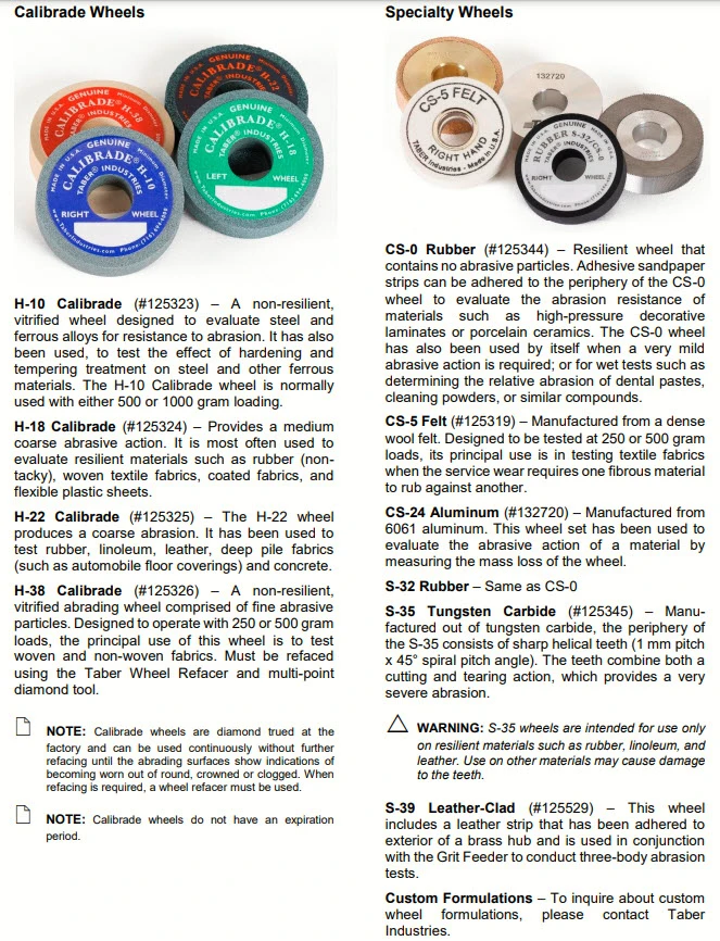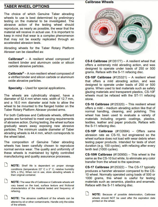 Taber Wear Index - Indicates rate of wear, and is calculated by measuring the loss in weight (in milligrams) per thousand cycles of abrasion. The lower the wear index, the better the abrasion resistance.