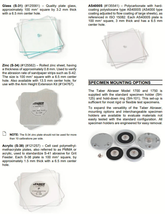 The TABER® ABRASER Model 352 S (Type 1700) has one specimen holder for performing abrasion tests.